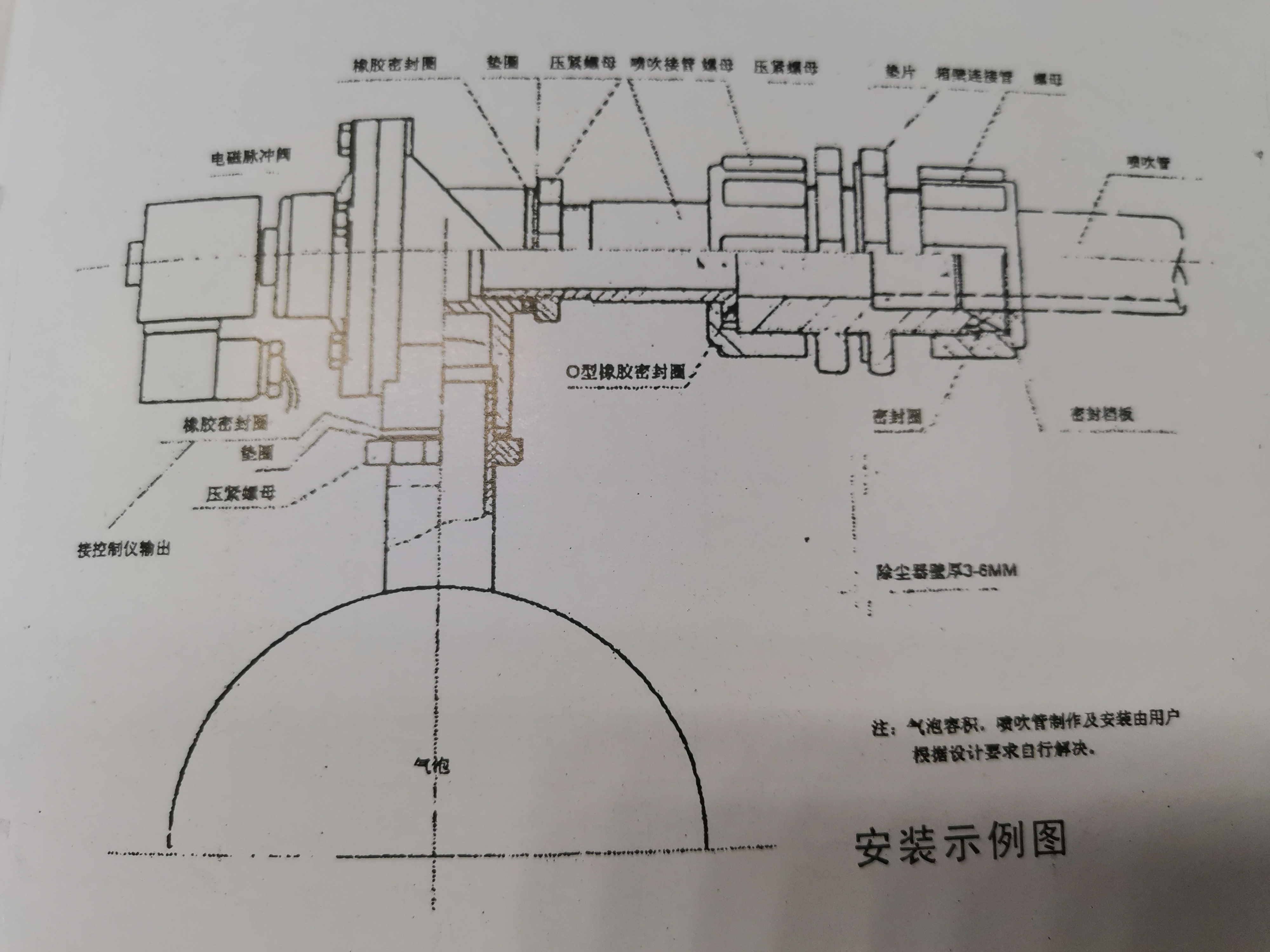四、安裝 1、脈沖電磁閥輸入端與儲氣筒采用金屬管連接,羅紋間填以四氟乙烯生料帶堅(jiān)固密封,輸出端與除塵器噴吹管用金屬管連接,羅紋間填以四氟乙烯生料帶緊因密封。